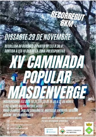 INSCRIPCIONS: DIES 20.21.24 i 25 DE 19:00 A 21:00 HORES LLOC: CENTRE MASDENVERGE ACTIU PREU: 8 € (Inclou samarreta, motxilla, entrepà i beguda) MÀXIM : 180 PARTICIPANS